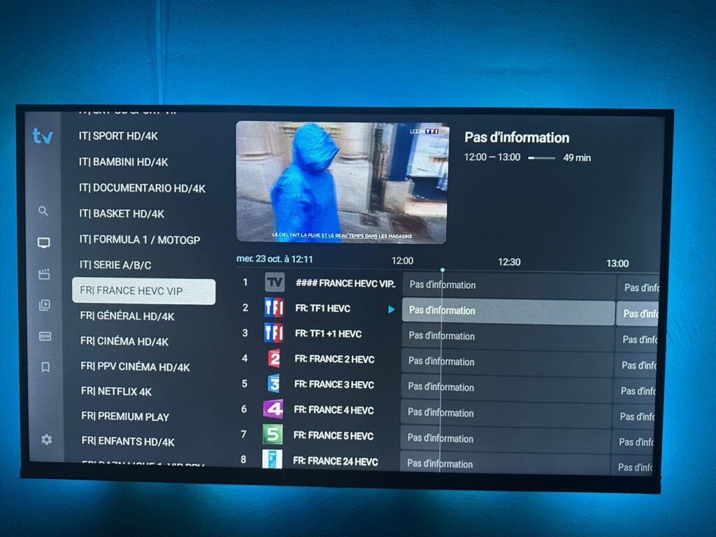 Une fois chargé, accédez au menu Paramètres pour ajuster l’apparence, gérer les catégories, activer le guide TV (EPG) et organiser vos chaînes favorites.