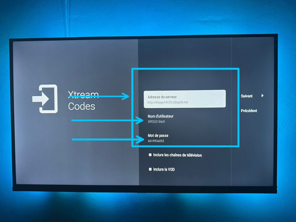 Entrez vos identifiants fournis par votre fournisseur IPTV, comme IPTV Quebec et cliquez sur « Suivant » et aprés » Appliquer« .